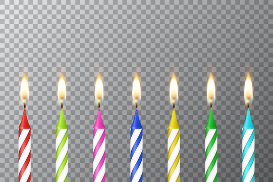 Realistic Burning Birthday Cake Candles Set Isolated On Transparent Royalty Free Cliparts Vectors And Stock Illustration Image